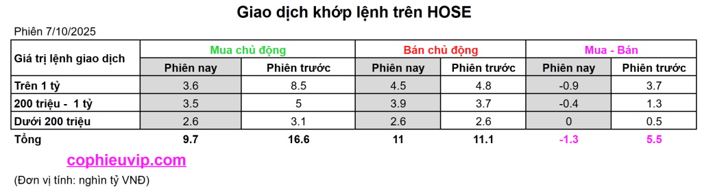 - Sự đồng thuận bán ròng của các nhóm lớn: Hai nhóm nhà đầu tư lớn nhất (lệnh trên 200 triệu) đều thể hiện xu hướng bán ròng trong phiên 07/10/2025.