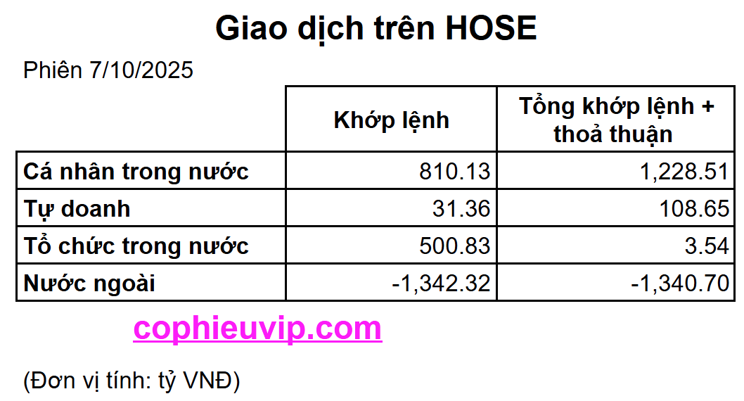 - Nước ngoài: Bán ròng mạnh -1,342.32 tỷ VND (khớp lệnh) và -1,340.70 tỷ VND (tổng hợp).