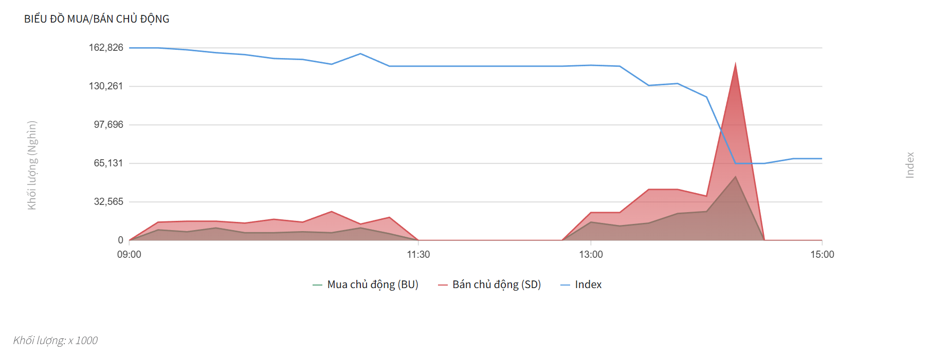 - Áp lực bán bắt đầu tăng lên sau 13:00, khiến Chỉ số Index bắt đầu lao dốc mạnh hơn.