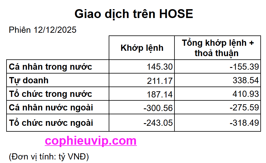 - Khối ngoại: Bán ròng -1,542 hợp đồng (Mua 10,064 HĐ, Bán 11,606 HĐ). Mức Short ròng này tăng so với phiên trước (-1,022 HĐ phiên 11/12).